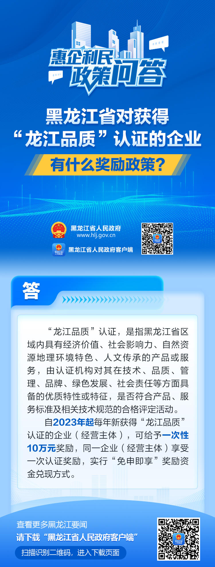 黑龙江省对获得“龙江品质”认证的企业有什么奖励政策?